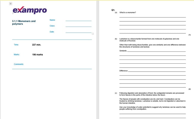 AQA A Level Biology Exampro topic tests